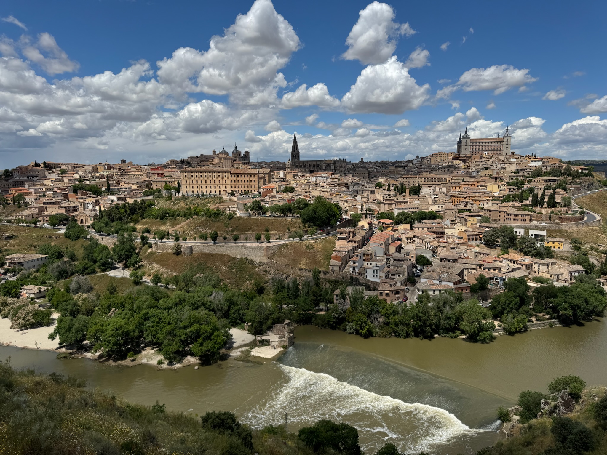 Spain's capital city is grand and vibrant. Our hotel on the Puerta del Sol felt like it was right in the beating heart of the city. The spectacular Museo del Prado was a bursting treasure chest of art. The Retiro Park sprawled nearby with sparkling lakes and fountains, tranquil groves, and lush flower gardens. The opulent royal palace and majestic cathedral on the other side of the city center were awe-inspiring. We enjoyed an elevator ride to the top of the Belles Artes building for a panoramic view of Madrid. However, our favorite adventure on this leg of the tour was the day trip we took to Toledo.
